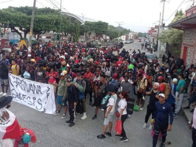La caravana migrante denominada «Génesis» salió está mañana del municipio de Huixtla para tomar nueva la carretera costera de Chiapas y recorrer 36 kilómetros para poder llegar al municipio de Escuintla.